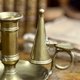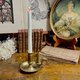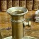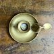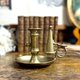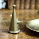 来自法国的手持式黄铜烛台,搭配了原配的锥形灭烛器。铜质厚重,表面留有岁月沉淀的自然包浆,呈现出温润、古朴的光泽感。宽大的底盘用于承接滴落的蜡油。旁边那个锥形的灭烛器,可以轻松地悬挂在提把旁的孔洞上,它的功能是轻轻盖住烛火,隔绝空气,安全地熄灭蜡烛。