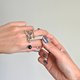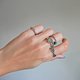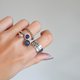 这款通用型戒指由两个简单的圆形金属丝环组成,饰有烟熏绞丝和 6 毫米天然宝石。天然宝石的尺寸也较小,与略带男性气息的扭曲线条相结合,即使是镶有宝石的戒指,设计也很容易与休闲装搭配,但又不会显得过于优雅。