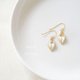 如同香蕉叶般宽阔的叶片造型,反射着阳光,闪耀着动人光泽。 叶片中央,点缀着一颗小巧的树脂珍珠,随着动作轻轻摇曳,是这款耳环的特色。 喜爱叶片造型的您,绝对不能错过这款独特的饰品。 耳环金属配件 (标准):黄铜 总长度:约 1.7 厘米 (不含耳环金属配件部分) *标准的耳环金属配件为黄铜。 若您有金属过敏,请多加留意。 若希望更换金属配件,请从零件更换选项中选择。 ◎什么是 14kgf... 指14K金的镀层重量占总重量的1/20以上。 是一种品质良好、较不易引起金属过敏反应的加工方式。