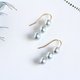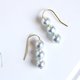 这是一款将三颗充满气质的青蓝色天然灰色日本阿古屋巴洛克珍珠,奢华地并排串联而成的勾式耳环。