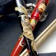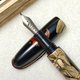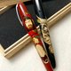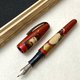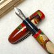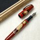 天然漆生漆彩绘,先手工72道色漆涂漆打磨反复着,熟成后抛光,有一程度的光泽就要花掉3-6个月的功夫,然后一笔一画上漆彩绘。有笔触有厚度,人物动物的神韵型态线条,以写意手法呈现,有别于一般的工笔画,除阿莫老师特有技法外,一笔一画有笔触,加入了日本莳绘的技法,所以仍可见其纹理。一般的漆笔平面工整看不到笔触,老山羊天然漆彩绘看得出一笔一画的笔触,以生动的线条勾勒主题。除可做静态的桌上摆件陈设,是相当有完整性的艺术作品。精益求精,非日制非陆制非化学涂料非印刷,老山羊打开天然漆工艺的新境界,以创新手法打造天然漆钢笔的新领域。以精湛的工艺再创钢笔可用可藏的新美学,钢笔不只是在让人享受手写的温度及纸面上的滑顺感,天然漆生漆彩绘钢笔更是可当桌上摆饰的艺术品。