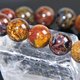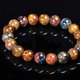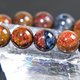 一图一物│10mm 多彩彼得石水晶手链 ,色彩多样而层次丰富。石面上交织着深邃的宝蓝与炙热的红铜色,仿佛烈焰与海洋的交汇,夹杂着金色丝绒般的光泽,随着角度变幻闪耀出迷人的虎眼光效。整体色彩对比鲜明,却又自然融合,展现出彼得石独有的神秘与力量感,犹如凝结的闪电风暴,气势磅礴而灵动非凡。本商品只有一件,请参考有关图片。
