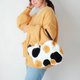 这是一款新款毛皮包,带有罕见的三色猫图案。