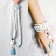 材质:天然拉利玛(海纹石)、砗磲、青金石、925银、18K金