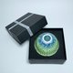 此作品是透过四到五层不同的釉药层层堆叠,借由每层施釉厚薄拿捏,并窑烧至1260度,历经20小时的烈火淬炼,让它在窑里收缩流动,产生出孔雀羽毛的斑纹与流动感。