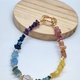由七种水晶碎石搭配而成 紫水晶 蓝磷灰 海蓝宝 绿磷灰 黄水晶 金沙太阳石 草莓晶 主珠为 10mm 白水晶