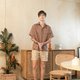 Solstice's Weekday adjustable shorts collection, linen men's adjustable waist with side adjuster and step buttons trousers. - Sand Color