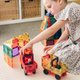 -尺寸:24 x 21 x 6 cm;包含2个带有轮胎的汽车底板、12片小正方块、8片长方块、2片空心门型方块