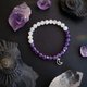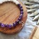 紫水晶与月光石手链 6毫米,新月吊饰,缀有珠饰 - 925纯银。弹性绳。