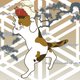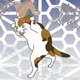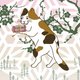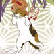 一幅三色猫跳狮子舞的图案和一幅携带幸运符的插图。