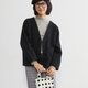 采用V领剪裁,可像针织外套般轻松披上。正面采用绑带设计,营造出自然的随性感。大尺寸圆形口袋是亮点,兼具可爱与实用性。适度宽松的版型,亦能修饰身形。