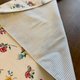 此款为双面设计,背面采用厚实的灰米色条纹棉布,