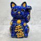 清水烧招财猫以深邃的青墨色为底色,犹如夜空般神秘且稳重,搭配金色的花火图案,仿佛烟花绽放瞬间的华丽闪耀✨。