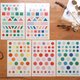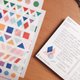 “几何色彩”这组贴纸,主要是以大小不同的各色几何图案组成,图案底层均无白墨,可透出底层颜色,也可以用来层叠,混和出不同的颜色。图案的大小约为 9~18 mm,除了拚贴外,也可以用在手帐纪录中喔!