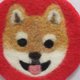 ニードルフェルティングで柴犬のような日本犬の顔を描き、コットン生地と縫い合わせてコースターにしました。周りの色は少しくすんだ赤(ローズ)です。