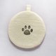 裏面は肉球スタンプ入りです。綿カス入りの生地を使用しているので茶色や黒の点々があります。