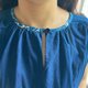 采用素色染制的靛蓝(indigo)布料,滚边处则运用了风铃木草的图案。