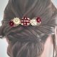 奢华地并排了五朵由一片片、层层叠加的“Tsumami Zaiku”所制成的手工花朵,是一款精致的发夹。