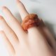 罕见缅甸a貨 红黄翡翠雕刻戒指虎牙精细雕工 R641-001