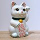 日本清水烧招财猫 花结晶 白 亿万両 左