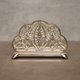 带有精致镂空雕花设计的镀银餐巾架由英国Novel Collections于1990年代制造,也可用来摆放信件或是帐单使用,底部的毛毡设计更显高贵;餐巾架数量有2个,状况很好无缺损,有轻微的使用与岁月氧化痕迹;详细状况请参考其他照片。
