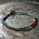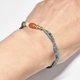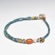 这是一款由掸族古董红玉髓、古代玛瑙、旧钦银与奥里萨黄铜的古董淡葱色混色细珠编织而成的纤细手链。