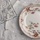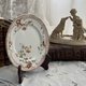 优雅的的洛可可装饰和色彩绚丽的花饰餐盘,它是在棕色铜板转印后,采用罕见的手绘着色的技术,当时铜版印刷转印到瓷器陶釉技术,使得Creil-Montereau 声明大噪。此为Alexandra系列,不对称的构图赋予其独特而丰富的外观。An elegant Rococo-style decorative plate adorned with vibrant floral motifs. It features a rare hand-painted coloring technique applied after brown copperplate transfer printing. The copperplate transfer onto ceramic glaze was a groundbreaking innovation that brought fame to Creil-Montereau. This piece belongs to the Alexandra series, with its asymmetrical composition adding a distinctive and richly expressive appearance.