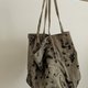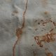 是利用锈铁来进行染色。在潮湿的环境下,将天然纤维与锈铁接触,静待时间的浸沁让锈色染入纤维里,进而呈色。