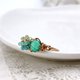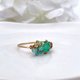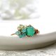 这款戒指以散发着深邃绿意的绿玛瑙为主石,搭配了橄榄石、蓝澳宝和亚马逊石。