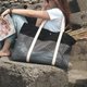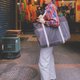 因此打造了由环保材质R-pet与纯棉交织而成的黑格包,