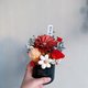 内容:黑色雾面陶瓷盆器、永生不凋花材、天然植物制成手工花、附赠谨贺新年的小卡。