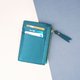 **渐层云杉(翠绿)拉链卡片钱包,由真牛皮制成。**