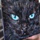 黑猫原画油画布写实主义小猫肖像由艺术家 Ginna Paola 创作。