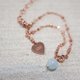 ♡主石♡天然海蓝宝,让配戴的人拥有勇气与力量。海蓝宝每一颗都有自己独特的色泽,就好像我们每一个人都是另一个人独特的唯一。链尾垂挂的爱心坠片可以刻上姊妹的名字和祝福的话语,谢谢亲爱的她陪伴我们的每个时光。
