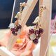 这款耳饰融合了红石榴石与葡萄石,展现出独特的色彩与风格。红石榴石以其深邃的红色象征着热情与活力,而葡萄石的柔和紫色则带来清新与优雅的感觉。