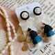 wow handmade 2-way摩登海军风-不对称复古钮扣耳环