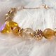 以生命灵数3号(创意数)为灵感,结合黄发晶、利比亚陨石、柠檬黄水晶与黄碧玺制作。