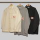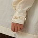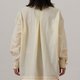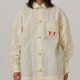 这款功夫衫外套采用米白色尼龙布料制成。 正面与袖口的盘扣,皆为同布料手工绑结而成。 背部的打褶设计,造就了 A 字线条的宽松廓形。 圆领设计更添一分正式感。 胸前的贴袋饰有当季品牌标签,背面亦有品牌标签。 可作为衬衫,亦可作为外套穿着,一件即可享受多种穿搭乐趣。