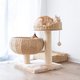 【商品包邮中】 ■环保纸绳编织,不容易黏猫毛 ■取自回收材料制成纸绳线,环保、安全,更多一份温暖的质感 ■附有吊绳玩具 ,也可洒些猫草吸引猫咪玩耍 ■绒毛部分是人造羊毛,触感柔软舒适 ■长x宽x高(cm):46 x 46 x 58