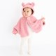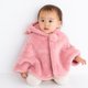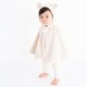 しっとりふんわり、肌触りのよい両面起毛のボアでつくったマントは、さっと羽織らせることが出来る便利なアイテムです。左右の裾につけたスナップボタンを留めると、袖のように手を通すことが出来ます。フードをかぶせれば、ちょんと耳が立って赤ちゃんのかわいらしさも引き立ちます。ベージュはくまの耳、ピンクはうさぎの耳を表現しています。ご出産のお祝いにもおすすめです。