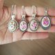 以丝带刺绣工艺打造的椭圆形花卉坠饰。 采用高品质布料、丝带及绣线精心制作。所有设计师系列皆以精美礼盒包装,确保运送过程安全无虞。 尺寸:2 x 2.5 厘米 ✿ 现货供应