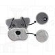 正面由人造毛皮布料制成,绣有各种动物面孔。手把可以依照使用者的喜好折叠或展开。手机介面后面有一个直径 5 厘米的磁铁,用于吸附在 Magsafe 兼容手机或保护壳的背面。
