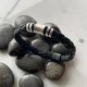 羊皮革编织+纯银段敲手环,选用植鞣皮绳纯手工编织完成,加上999纯银段敲,皆可定制