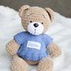 - A teddy bear is a real symbol of childhood. He is a soft and gentle toy that will melt your heart. I am sure that you will make friends from the first second. The beige bear can be given to the baby for the first photo shoot or for the first birthday, it is ideal as a baby shower gift. The sweater is removed, and the toy can be dressed up in your outfit.