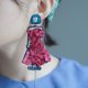 运用多种技法 用贴布绣的方式 为小女子们穿上各种衣服 串连的地方用珠珠串起 使耳环可随着摆动摇曳 过程繁杂有趣 是戴着会让心情好起来的作品 就像多了个伙伴在身上