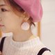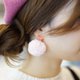 透明粉红压克力爱心, 金属耳针, 粉红色毛毛球