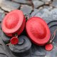 红龟粿(ㄍㄨㄛˇ),延续传统红龟粿的吉祥寓意,以手工皮革工艺重新诠释这项文化符号。红色象征平安与喜气,圆润形状寓意团圆与幸福。