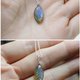 使用有蓝色光晕的拉长石叶子雕刻, 另外搭配1mm极细的纯银链。