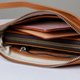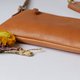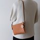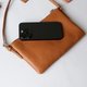 时尚的真皮斜挎包,可以装下卡片、现金、手机和长款钱包。只带这个包就能轻松出门。