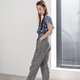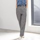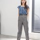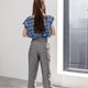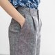 高腰麻长裤,正面有钮扣、腰带环和侧袋。腿可以折叠起来,看起来很酷。穿上它显高又修长,腰细了。缝制得很好,保证不会让你失望。